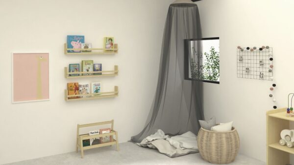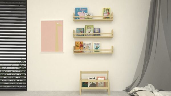 La otra se apoya sobre el piso y a la altura del niño/a. Es una biblioteca más pequeña que contiene los libros que se van a utilizar ese día o semana.