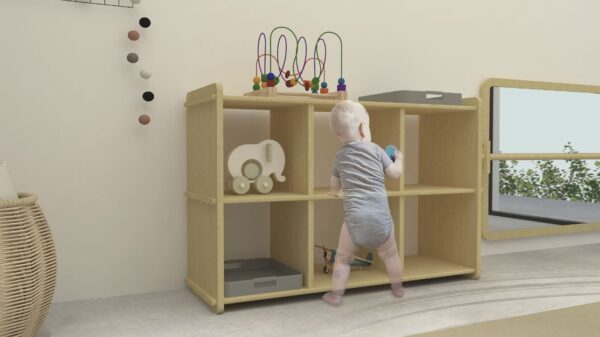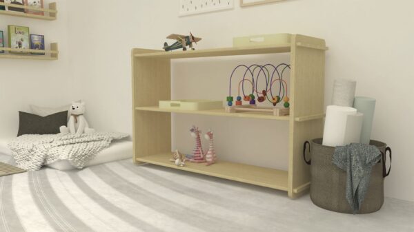 There are different types and designs of shelves. The most important thing is that they respect the main goal: that they are at the child’s level so that the child can access the activities on his own.